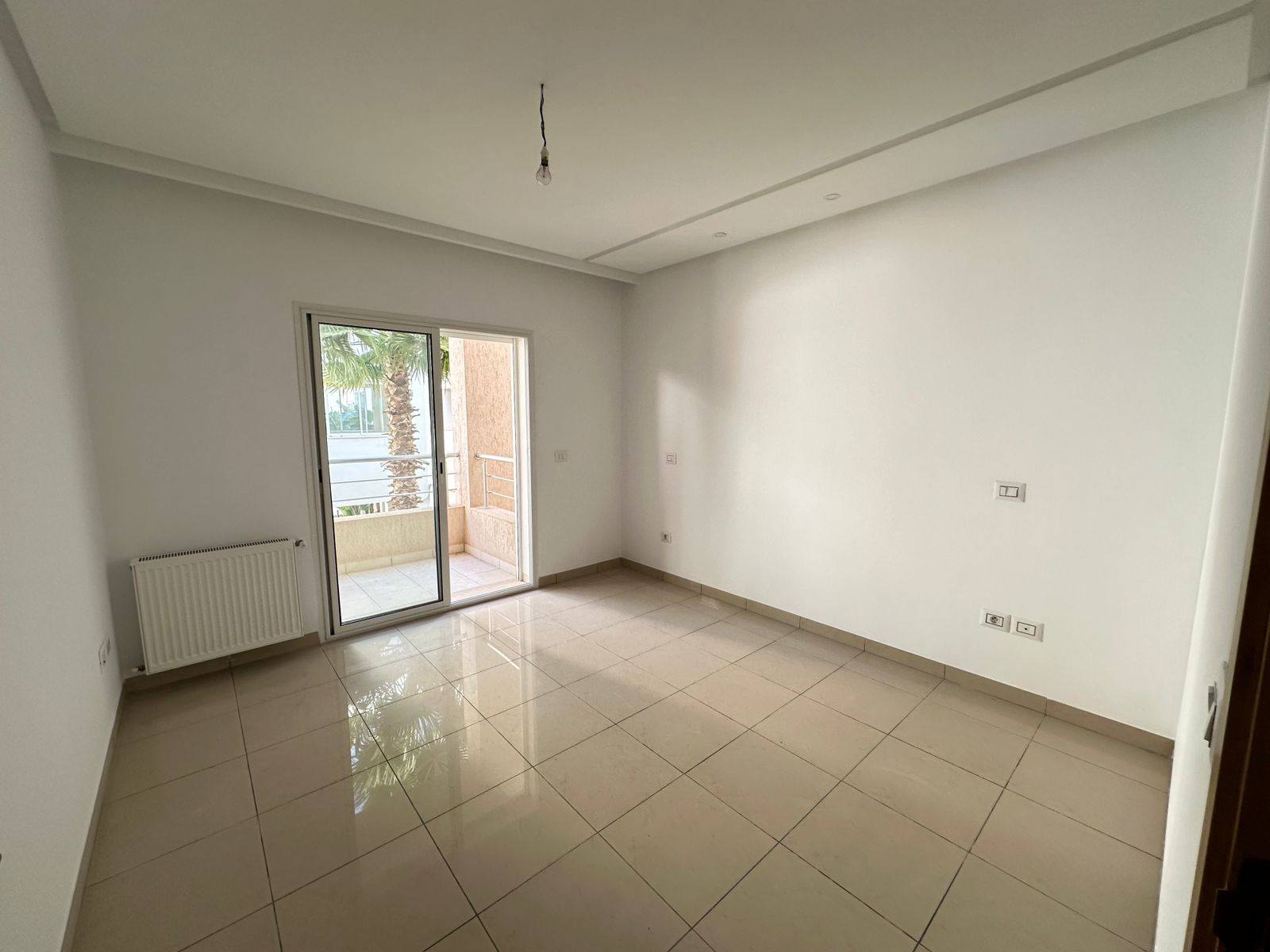 un appartement S+1 haut standing au 1er étage d’une résidence R+2 moderne, sécurisée et avec ascenseur, idéalement situé à La Soukra, proche de Hammadi Abid et de l’aéroport Tunis-Carthage. Il se compose d’un salon lumineux avec kitchenette équipée, d’une chambre avec terrasse, chauffage central, climatiseur et système d’alarme. Place de parking en sous-sol incluse, résidence propre et bien entretenue, à proximité de toutes les commodités.